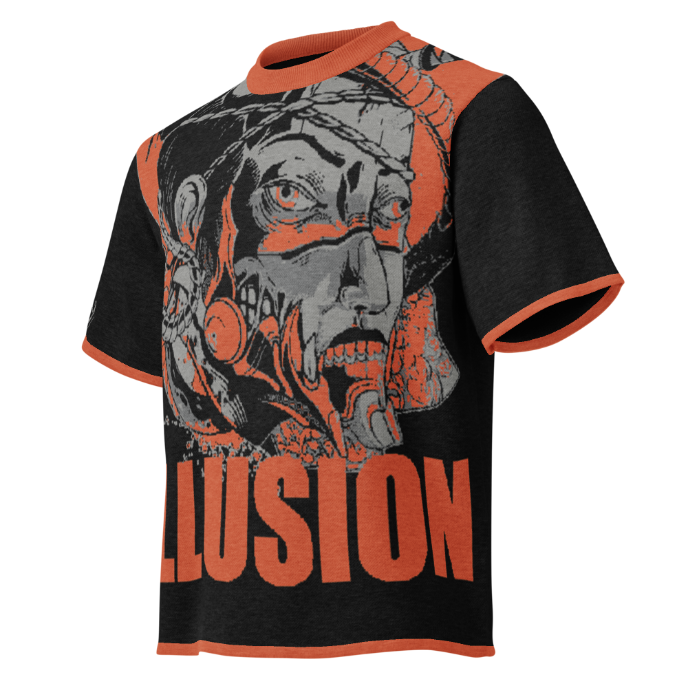 This is not a t-shirt. It is the NINTH ARTIFACT in the lineage of AURA. A medium of extraordinary density, meticulously engineered from a robust, high-performance COTTON-POLY JACQUARD WEAVE, weighing a substantial 450 GSM. Its weight is intentional; it provides a foundational structure that holds the intricate narrative of the design with unwavering authority.